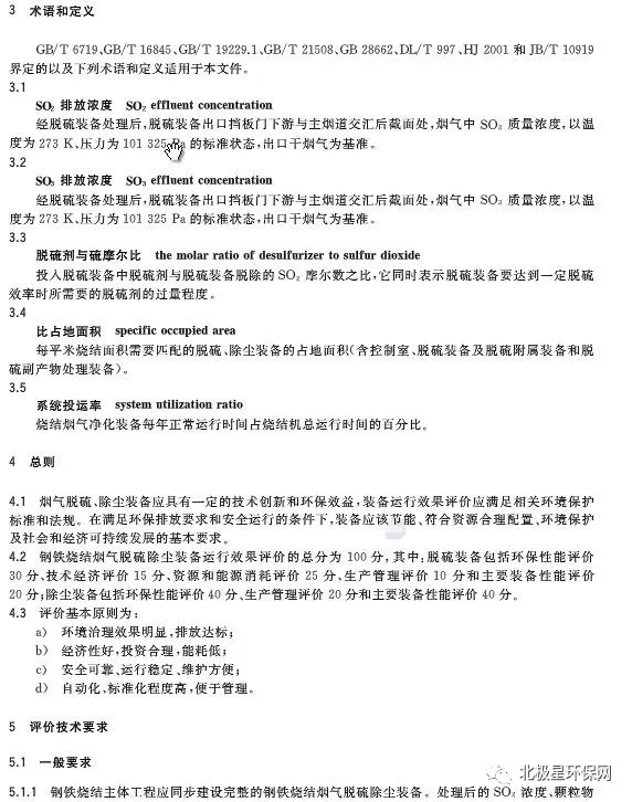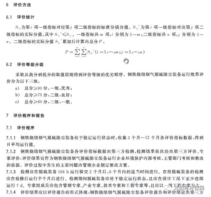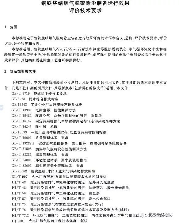 該《標(biāo)準(zhǔn)》適用于鋼鐵燒結(jié)煙氣石灰石/石灰-石膏法和氨法等式濕法脫硫裝備,煙氣循環(huán)流化床法和旋轉(zhuǎn)噴霧干燥法等半干法/干法脫硫裝備的運(yùn)行效果評(píng)價(jià),煙氣除塵使用的電除塵和袋式除塵器的運(yùn)行效果評(píng)價(jià),其他類似脫硫除塵工藝也可參照?qǐng)?zhí)行。