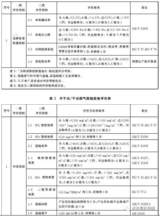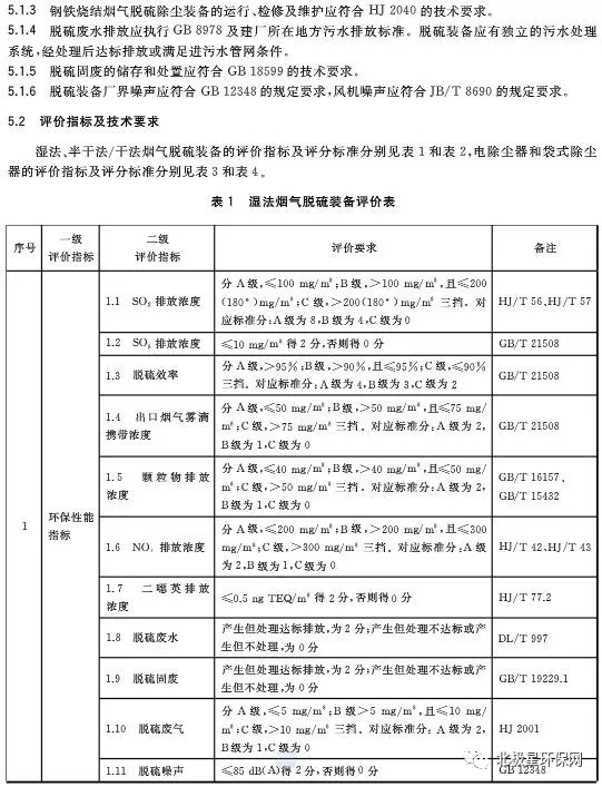 日前,中華人民共和國國家質(zhì)量監(jiān)督檢驗(yàn)檢疫總局、中國國家標(biāo)準(zhǔn)化管理委員會(huì)發(fā)布《鋼鐵燒結(jié)煙氣脫硫除塵裝備運(yùn)行效果評(píng)價(jià)技術(shù)要求GB/T 34607-2017  》。根據(jù)標(biāo)準(zhǔn)要求,鋼鐵燒結(jié)煙氣脫硫除塵裝備運(yùn)行效果評(píng)價(jià)總分為100分,其中:脫硫裝備包括環(huán)保性能評(píng)價(jià)30分,技術(shù)經(jīng)濟(jì)評(píng)價(jià)15分,資源和能源消耗評(píng)價(jià)25分、生產(chǎn)管理評(píng)價(jià)10分和主要裝備性能評(píng)價(jià)20分;除塵裝備包括環(huán)保性能評(píng)價(jià)40分,生產(chǎn)管理評(píng)價(jià)20分和主要裝備性能評(píng)價(jià)40分。濕法脫硫性能指標(biāo)包括SO2排放濃度、SO3排放濃度、脫硫效率、霧滴濃度、顆粒物排放濃度、NOx濃度、二惡英濃度等,詳見表1。半干法/干法脫硫性能指標(biāo)包括SO2排放濃度、SO3排放濃度、脫硫效率、顆粒物排放濃度、NOx濃度、二惡英濃度等,詳見表2。電除塵、袋除塵主要性能指標(biāo)包括顆粒物濃度、去除率、本體漏風(fēng)率、壓力降等,詳見表3、4。